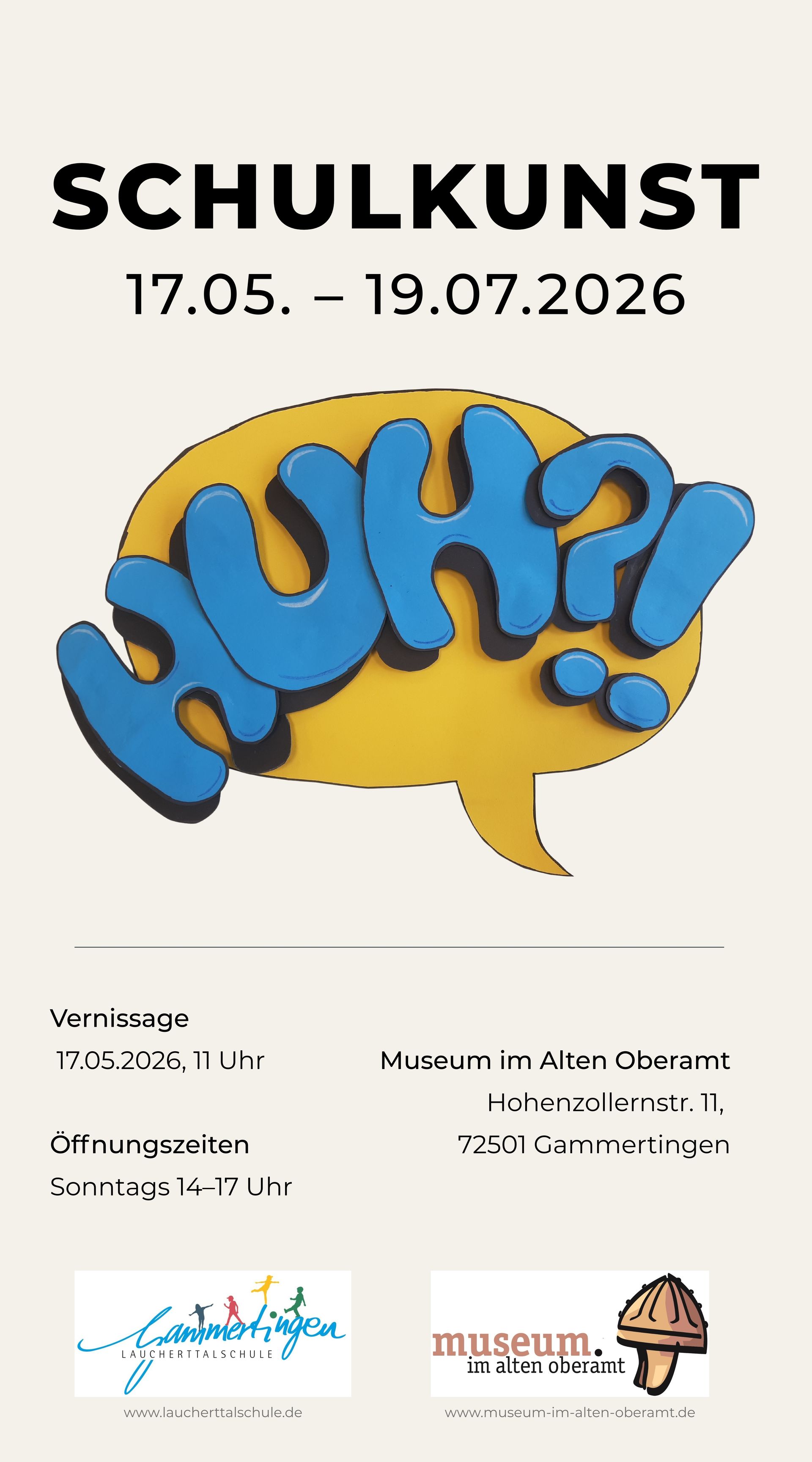 Für den Arbeitskreis ist dies die vierte Ausstellung mit dem Schwerpunkt "Schulkunst" im Museum. Die Werke der Schülerinnen und Schüler der Laucherttalschule werden immer sonntags vom 17.05. bis zum 19.07.2026 (14-17 Uhr) gezeigt. Für Sonderführungen schreiben Sie bitte an f.geist@museum-im-alten-oberamt.de