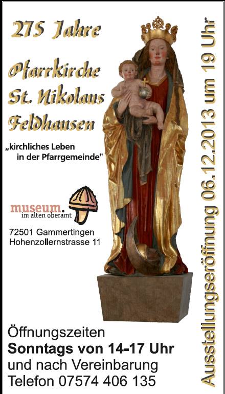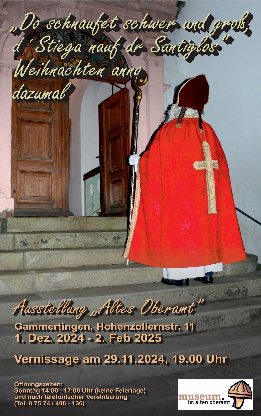 Am Nikolaustag, Samstag, den 6. Dezember, ab 11 Uhr, lädt das Museum herzlich zu einem adventlichen Museumstreff ein. Unter dem Motto „Geschichte, Glühwein und Geselligkeit“ stehen Einblicke in das Wirken des vielseitigen Gammertinger Bürgers Heinrich Reiser ebenso im Mittelpunkt wie das gemütliche Beisammensein bei Weihnachtsgebäck, Glühwein und guten Gesprächen.
